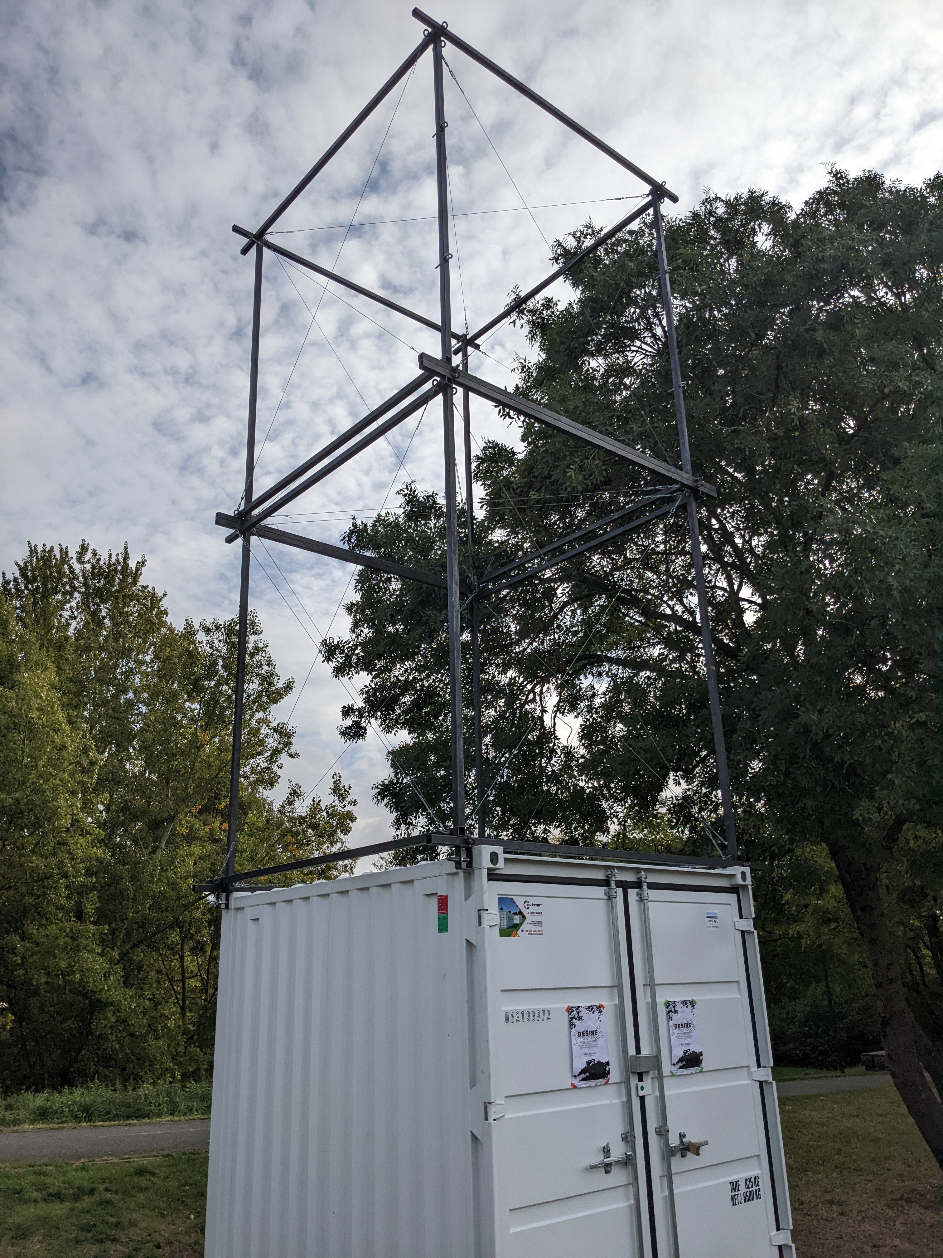 Le projet d’installation éphémère en bord de Seine à Alfortville s’inscrit dans une démarche de création artistique et de diffusion culturelle hors les murs, au cœur du quartier industriel et en interface directe avec les berges de la Seine. L’ouvrage, imaginé par l’artiste Daniel Purroy, constitue un nouveau dispositif culturel temporaire intitulé **L’ATELIER DES ARDOINES**. L’opération consiste en la mise en place de deux conteneurs maritimes lestés, supportant une structure verticale en éléments tubulaires métalliques d’environ 15 m de hauteur. Cette structure porte de grands panneaux signalétiques « Atelier des Ardoines » ainsi qu’un drapeau positionné en partie sommitale, visibles depuis les berges et les axes environnants. La structure métallique est conçue comme un ouvrage démontable, adapté à une implantation temporaire en milieu extérieur. La stabilité globale est assurée par le lestage des conteneurs, dimensionné pour reprendre les efforts verticaux et horizontaux, notamment les actions de vent, sans mise en œuvre de fondations profondes ni d’ancrages définitifs dans le sol.Les éléments constitutifs sont assemblés mécaniquement afin de permettre le montage, le démontage et le réemploi de l’installation. Les assemblages, les interfaces entre la structure tubulaire et les conteneurs, ainsi que les dispositifs de fixation des panneaux et du mât de drapeau, ont été spécifiquement étudiés pour garantir la sécurité du public, la résistance aux sollicitations climatiques et la durabilité en ambiance extérieure. La mission comprend la conception de la structure métallique, le dimensionnement du système de lestage, l’étude des assemblages et des fixations, ainsi que le suivi de chantier, incluant l’assistance au montage, la vérification de la conformité de l’exécution et l’accompagnement jusqu’à la mise en service de l’installation.