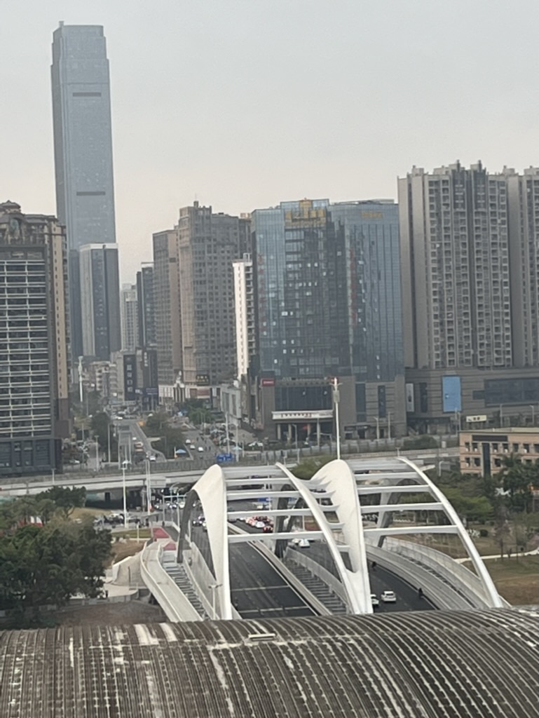 La ville de Huizhou développe un nouveau quartier de bâtiments publics, salles de concert de grande capacité, et d’habitation. Pour y accéder, un nouveau pont doit franchir la rivière Dan Shui. La proposition faite lors du concours de conception est un ouvrage métallique avec un système hybride d’arc de type «bow string» et pont à béquilles. Le tablier est continuu et posé sur l’arc au droit de l’intersection et les efforts de soulèvement sont repris par des tirants ancrés dans les massifs de fondation de la culée. Ce système complexe a été étudié d’abord dans l’agence à Paris lors des esquisses et ensuite développé localement avec l’agence TUCDRI. Razvan Ionica, d’abord associé directeur chez Marc Mimram Ingénierie et ensuite à partir de son agence, développe sur place en 2021 les détails géométriques et structuraux de l'ouvrage. Il suit ensuite la réalisation des travaux, le montage de la charpente en usine et la pose des éléments sur site.
